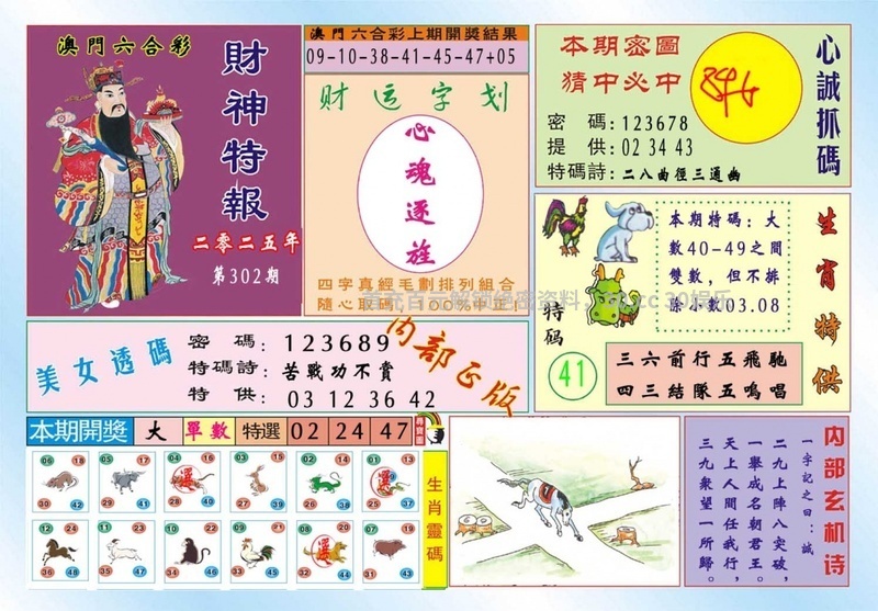 | 300期:单双各四肖 开:虎40准 |